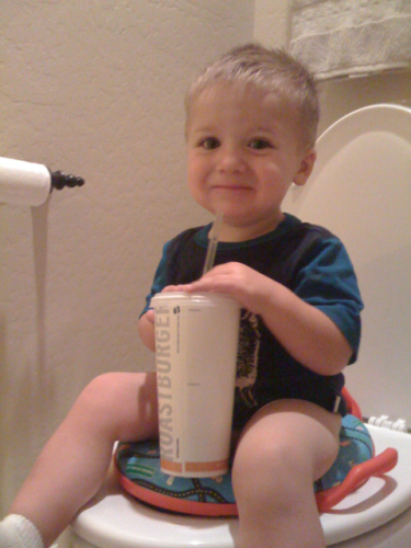 He hasn't actually gone in the potty yet, but he is starting to try. He came and got me yesterday and said "pee pee, pee pee" so we went into the bathroom to try sitting on the toilet. No luck! He just sat there and drank water for a good 10 minutes.