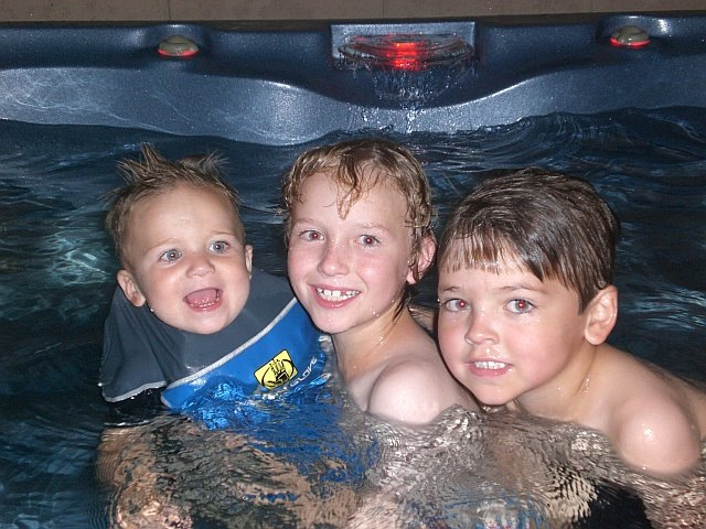 Jason had so much fun swimming in the jacuzzi with his cousins Shane and Karsen! This was at an early Mothers Day dinner we all went to at Adam's brother and sister in law's house. It was a total blast and the kids had so much fun!
